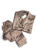 SB21- Bronz Çizgili Kısa Kollu Saten Pijama Takımı