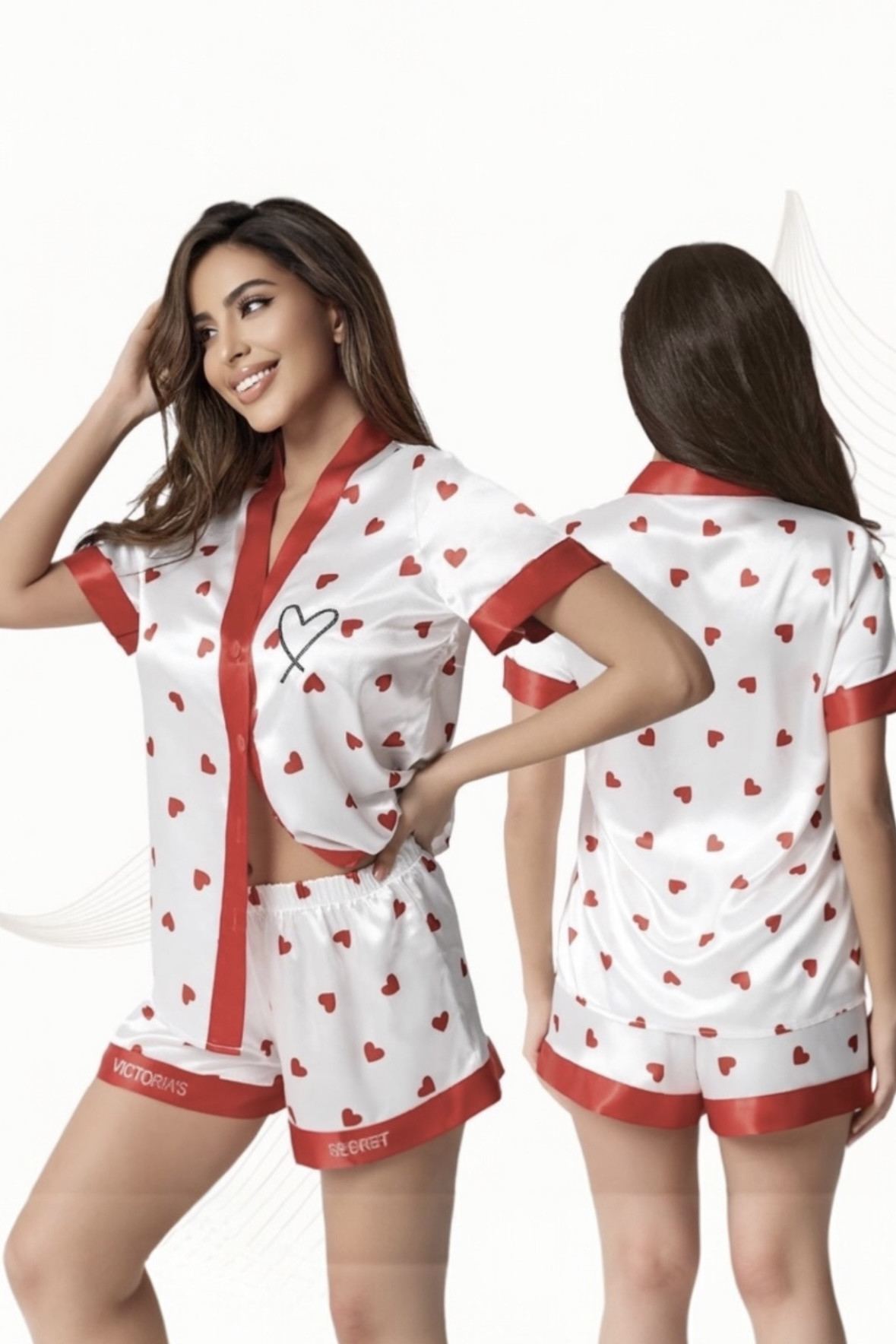 SB47- Beyaz Saten Yakasız Kısa Kol Şortlu Takım