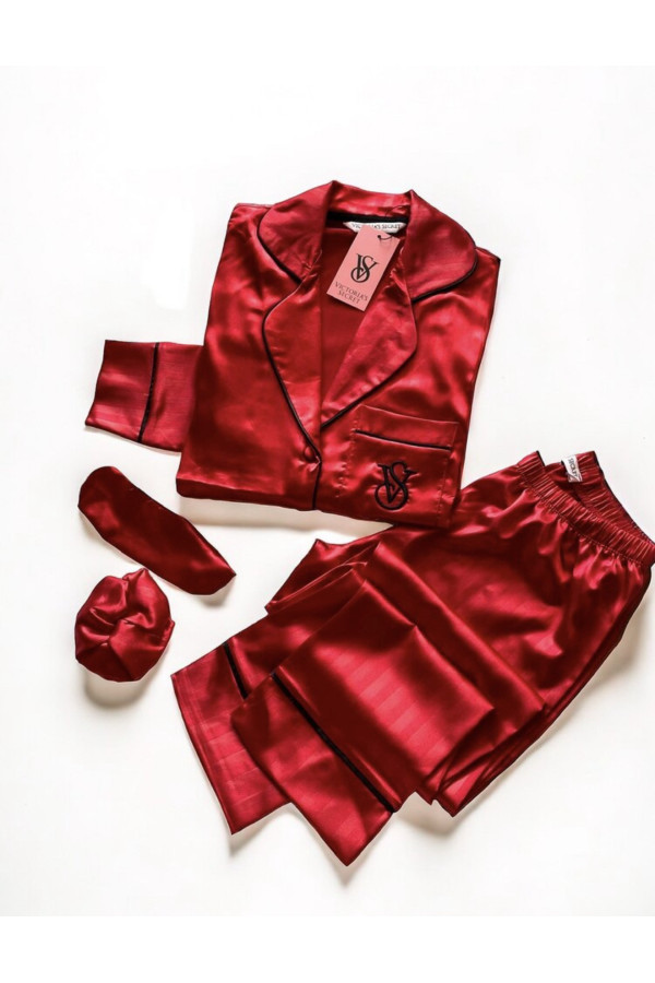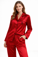 SB16- Kırmızı Çizgili Saten Uzun Kollu Pijama Takımı